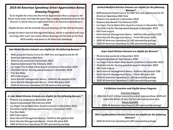 ALL AMERICAN SPEEDWAY REVEALS DRIVER APPRECIATION BONUSES